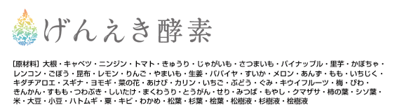 名称:植物性発酵飲料(清涼飲料水) 原材料名:大根、キャベツ、にんじん、トマト、キュウリ、じゃがいも、さつまいも、里芋、カボチャ、 レンコン、ごぼう、やまいも、生姜、 とうがん、まくわうり、もやし、うめ、りんご、メロン、パイナップル、もも、いちご、いちじく、びわ、レモン、キウイフルーツ、 あけび、すもも、きんかん、すいか、ぶどう、柿の葉、あんず、カリン、グミ、パパイヤ、ヨモギ、スギナ、せり、みつば、菜の花、くまざさ、キダチアロエ、しその葉、つわぶき、わかめ、昆布、米、大豆、小豆、ハトムギ、栗、キビ、松葉、杉葉、しいたけ、松樹液、杉樹液、桧葉、桧樹液 内容量:500mg 賞味期限:パッケージ枠外下部に記載 保存方法:直射日光・高温多湿を避け、涼しい所に保存して下さい。